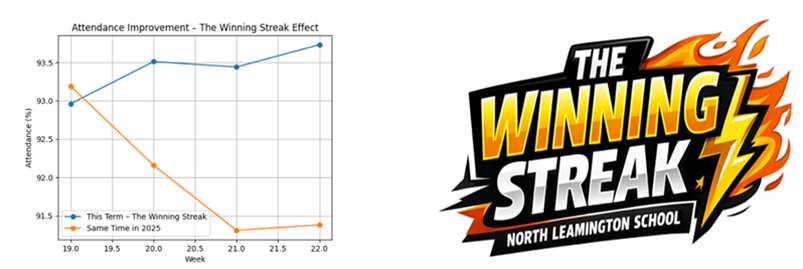 We are thrilled with the engagement in our Winning Streak attendance competition this half term. Many students achieved 100% attendance, marking a significant improvement on the same period last year. This success reflects the joint efforts of students, staff, and families—thank you for your continued support.