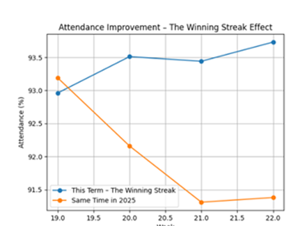We are extremely proud of how well the whole school has participated in our Winning Streak competition this half term. As shown in the graph, a fantastic number of students have achieved 100% attendance, with a significant improvement compared to the same time last year. Students have responded incredibly well, and the results reflect the collective effort across the school. An enormous well done to all our students, tutors and families for their continued commitment and support — thank you for helping make this such a success.